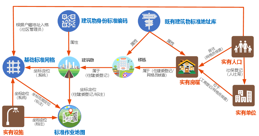 平台利用GIS技术提供地理服务支撑,通过电子政务外网与委办局进行基础数据交换,打通部门间的“信息孤岛”,通过上门核准的方式提高数据质量和数据鲜活性,采集更新的数据共享给委办局,实现数据的最大化利用。
