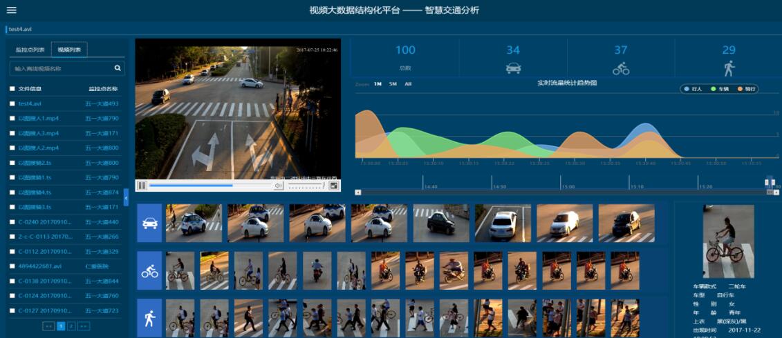 视频图像本身是非结构化的数据,视频结构化技术就是对视频图像中人、车、物、行为、事件进行标记处理,在专用平台里再进行语义搜索就可以得到相应的结果了,比如人的特征(性别、衣服颜色等)、车的特征(车牌、颜色、标志物等)。佳都视频结构化系统能够将运动过程中的人、车、物进行结构化处理,包括把自行车、三轮车、机动车和人等都实时进行分析。而且不同的车型也会实时进行几十个不同特征的标注,例如车牌号码、车牌类型、车牌颜色、车身颜色、车型、车牌品牌等,还有一些标识物如危险品车、年检标、遮阳板、挂饰、纸巾盒、副驾、是否打电话、是否系安全带等。在实战应用中查找视频的时候通过语义检索、以图搜车等检索手段,可快速准确的找到目标车辆以及目标人物。