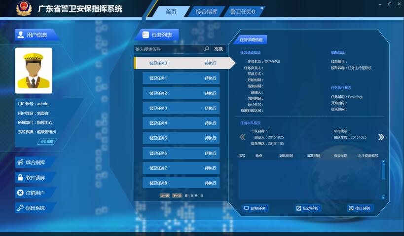 项目背景:警卫指挥调度信息化建设仍相对空白,已建成全省警卫基础工作数据库与警卫任务库,为警卫任务的前期准备与后期总结提供了数据支撑,但是缺乏对任务执行过程的跟踪监控。项目定制开发了统一的应用支撑平台、分析研判系统、指挥调度系统,实现了任务交接监控、视频监控联动、警力定位等重要功能